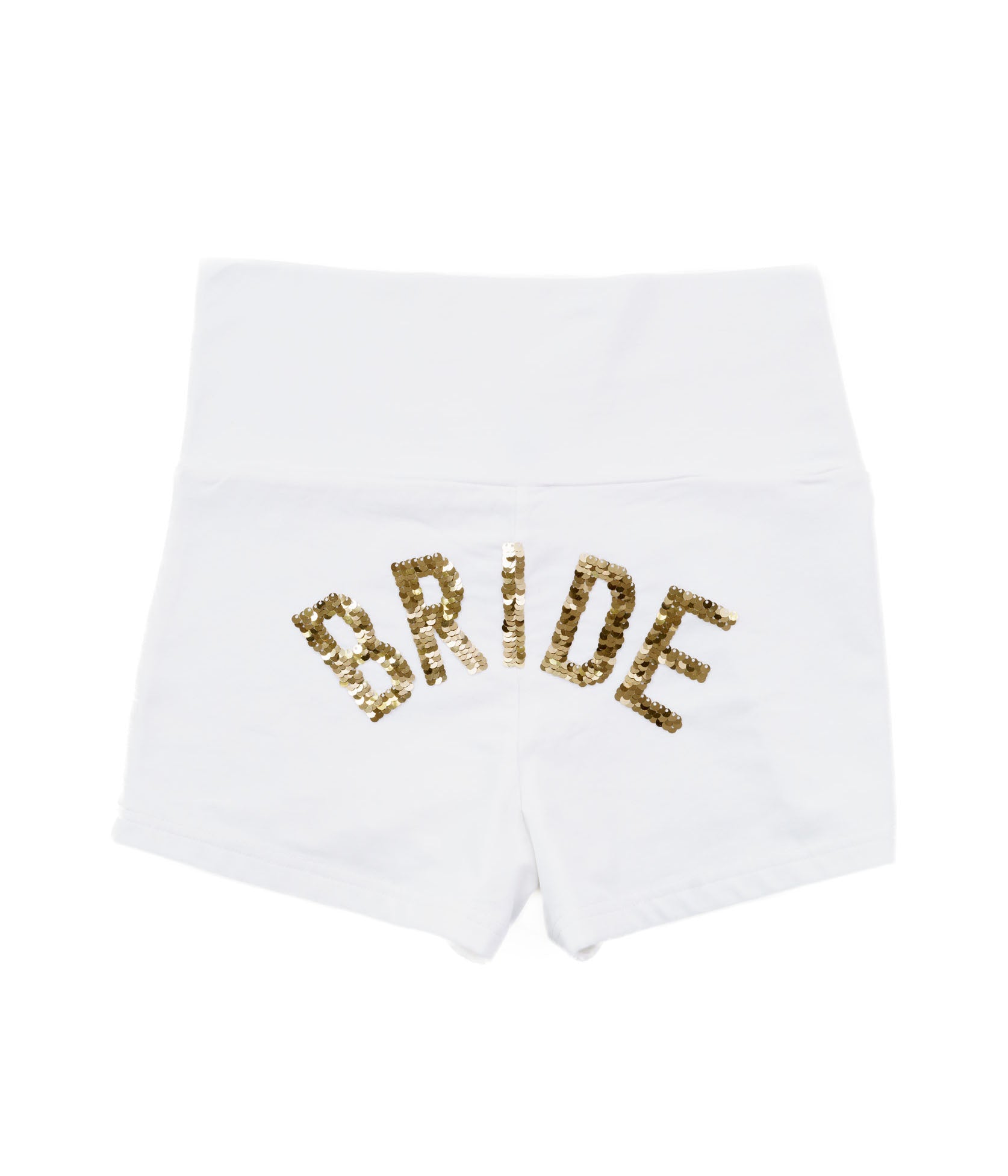 Precioso pantalón corto confeccionado en algodón orgánico. Las lentejuelas son reversibles, por lo que puedes usar el texto en dorado o plateado. La parte trasera del pantalón corto está confeccionada en doble tejido. Para luna de miel o despedida de soltera.