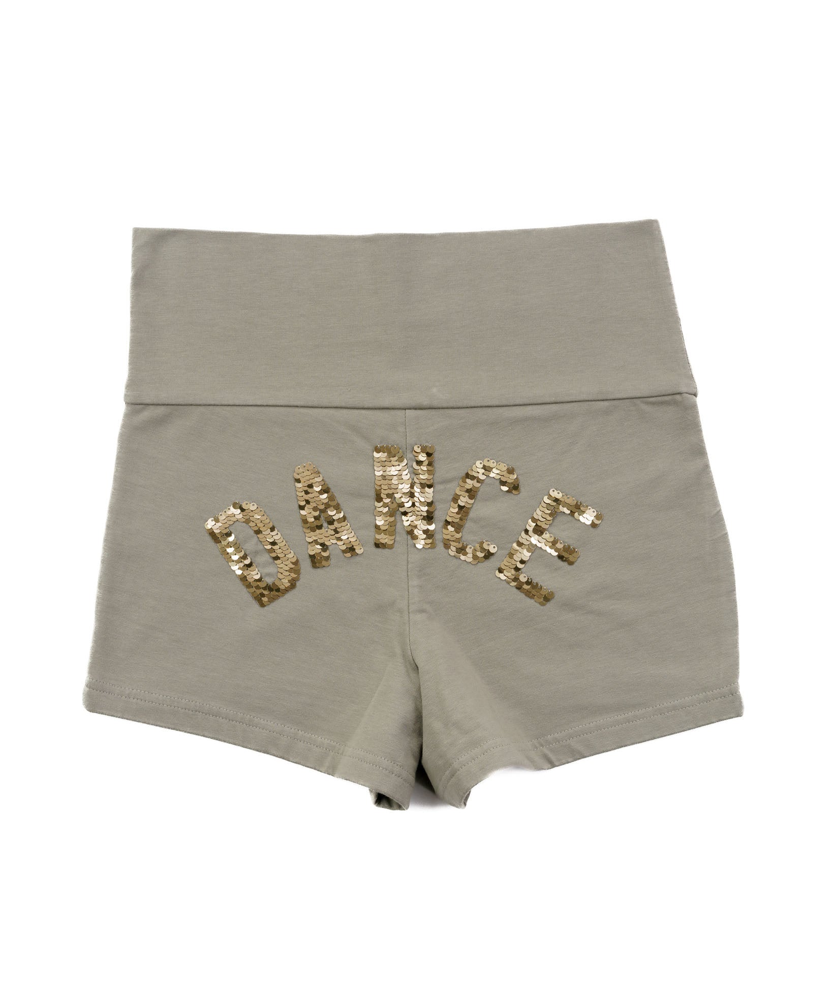 Precioso pantalón corto confeccionado en algodón orgánico. Las lentejuelas son reversibles, por lo que puedes usar el texto en dorado o plateado. La parte trasera del pantalón corto está confeccionada en doble tejido.