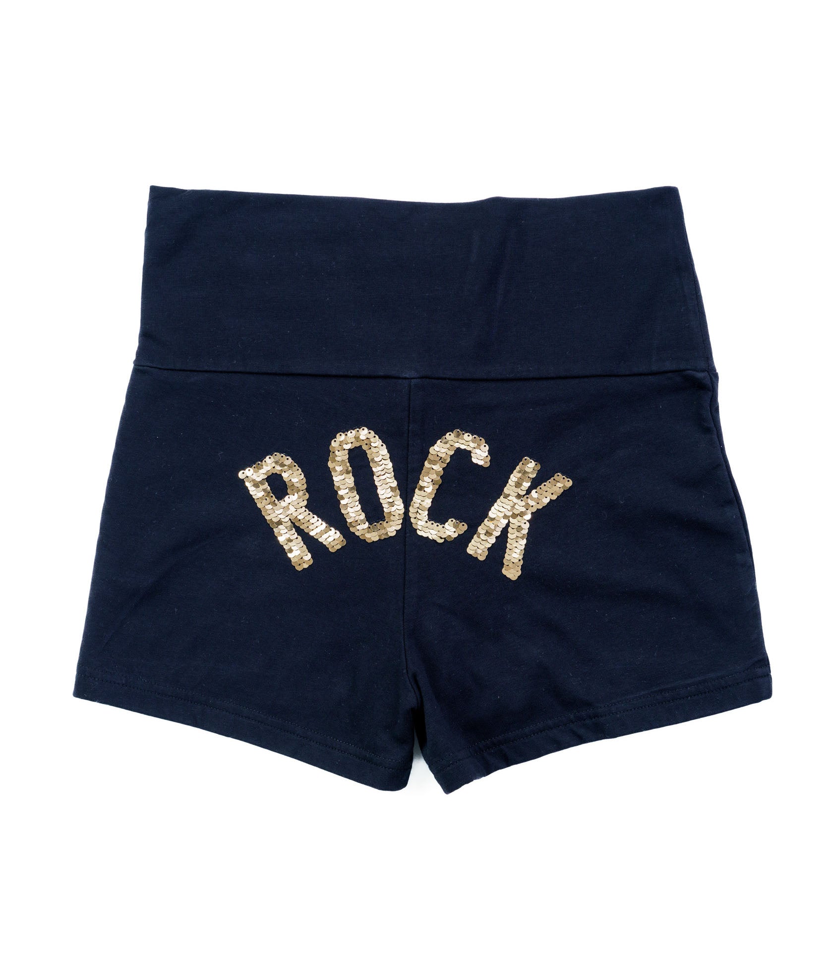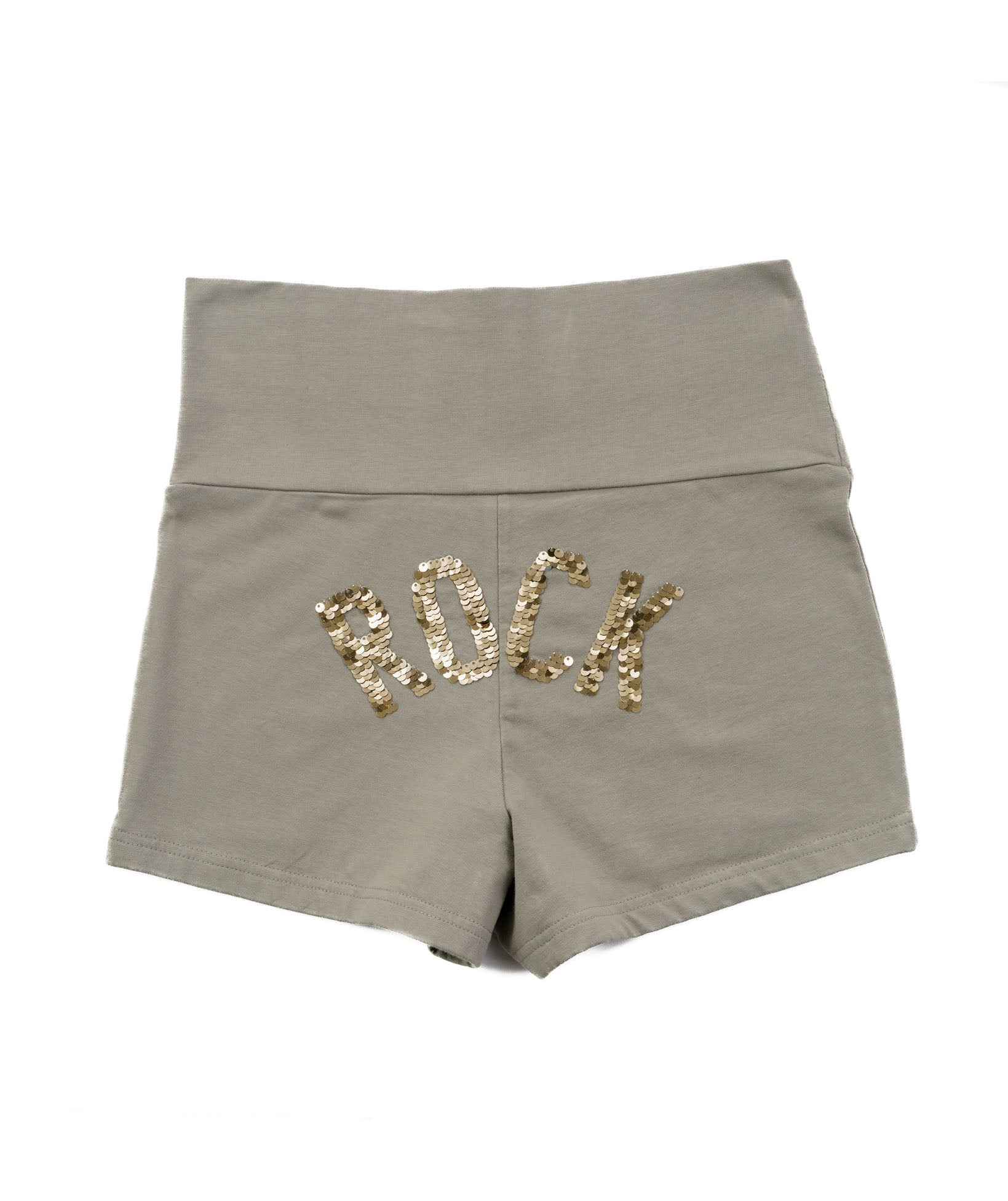 Precioso pantalón corto confeccionado en algodón orgánico. Las lentejuelas son reversibles, por lo que puedes usar el texto en dorado o plateado. La parte trasera del pantalón corto está confeccionada en doble tejido.