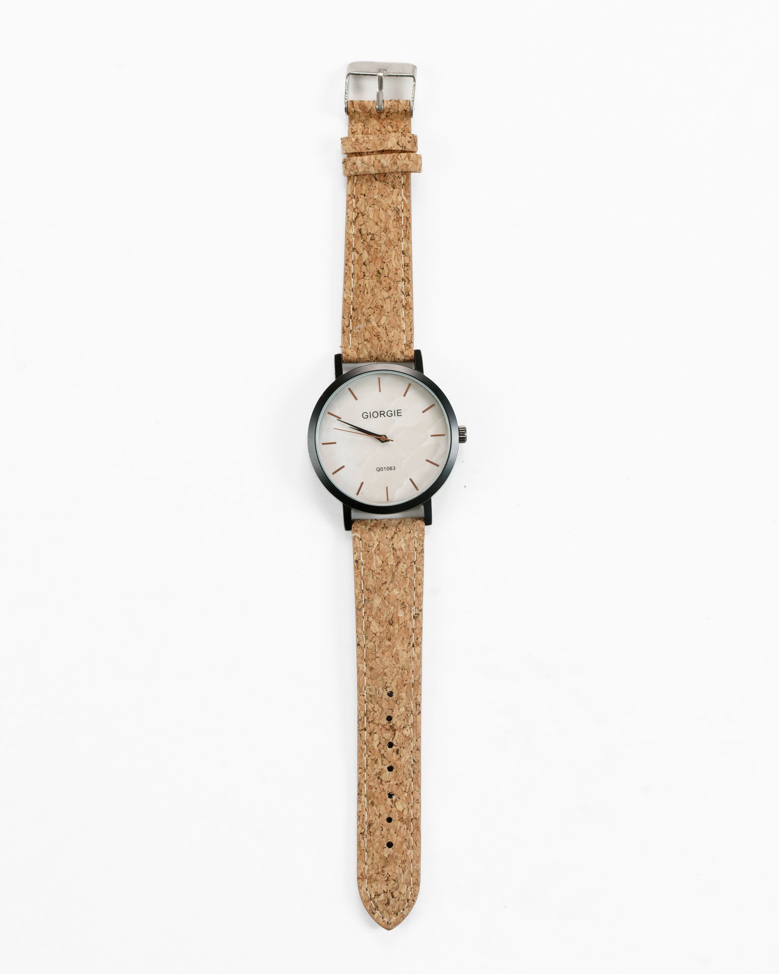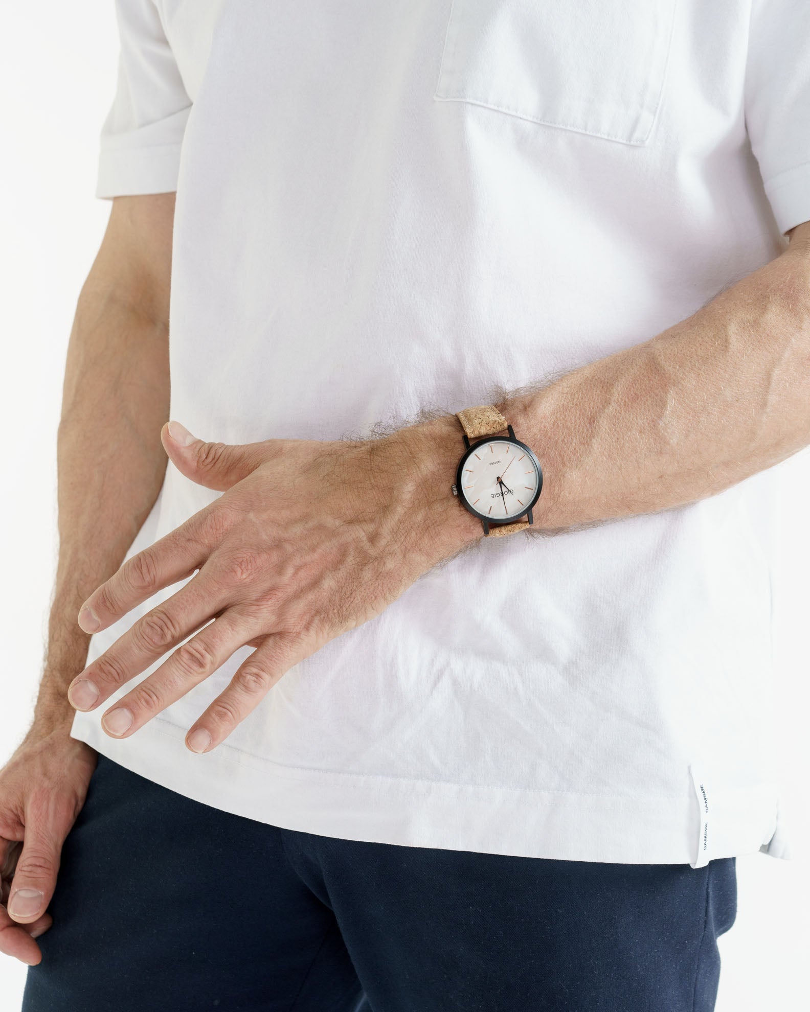 Snygg korkklocka. Vegan. Längd: 25 cm. Urtavlans diameter är 4 cm. Passar även som företagspresent.