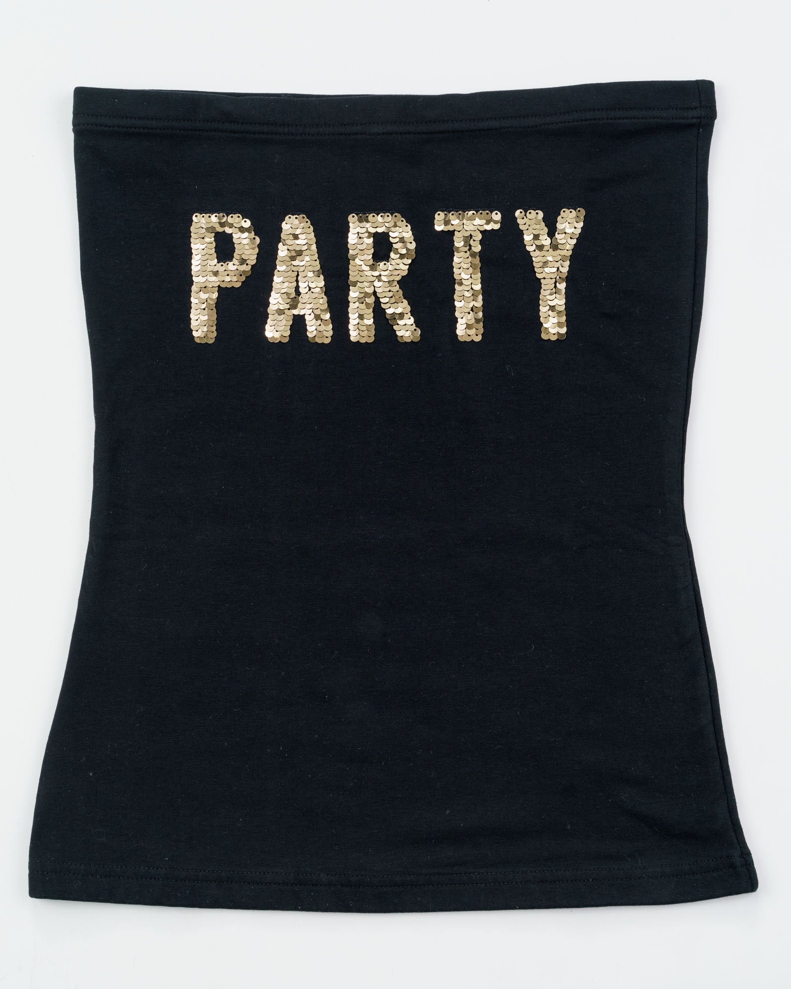Härlig topp i ekologisk bomull. Paljetterna är vändbara, så du kan använda texten i antingen guld eller silver. Framsidan av toppen är gjord av duppelt tyg.