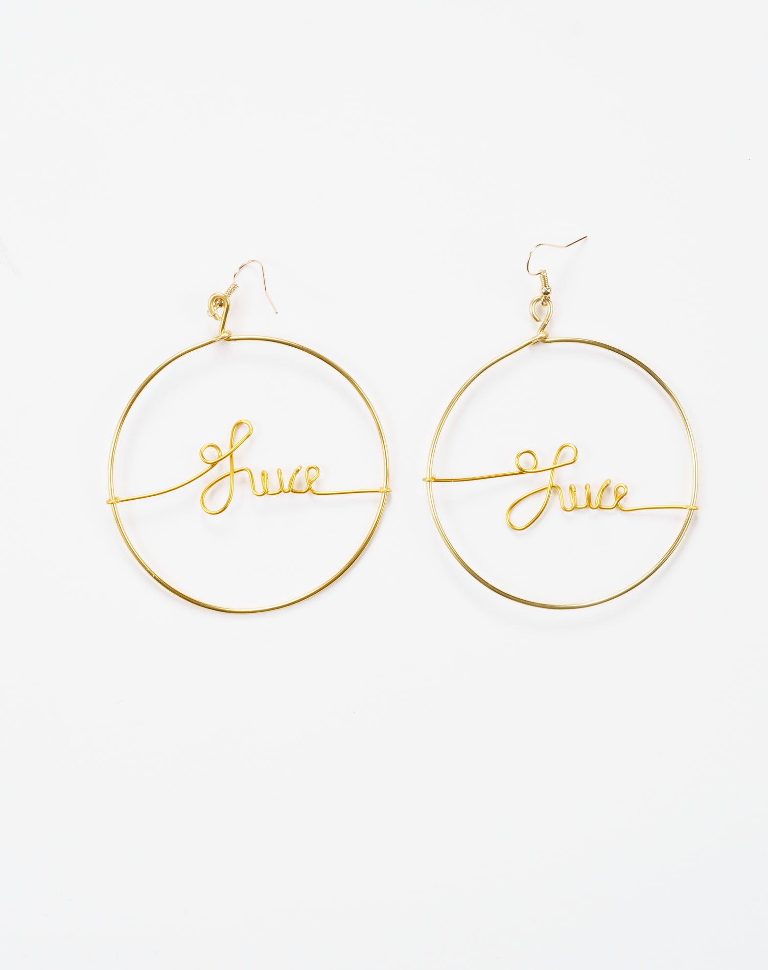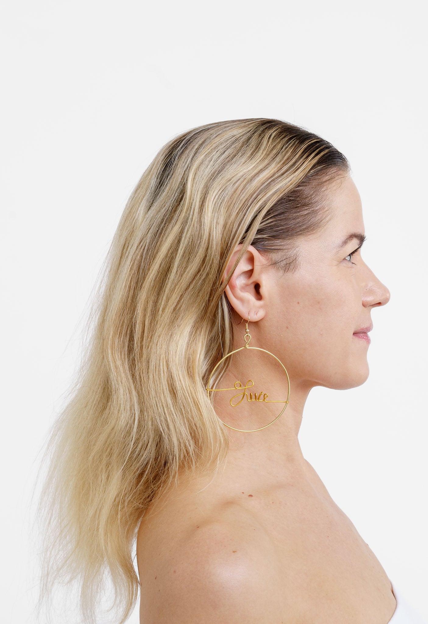 Ultralätta örhängen av aluminium. Krokar i förgylld mässing. Diametern pä örhängena är 7 cm.