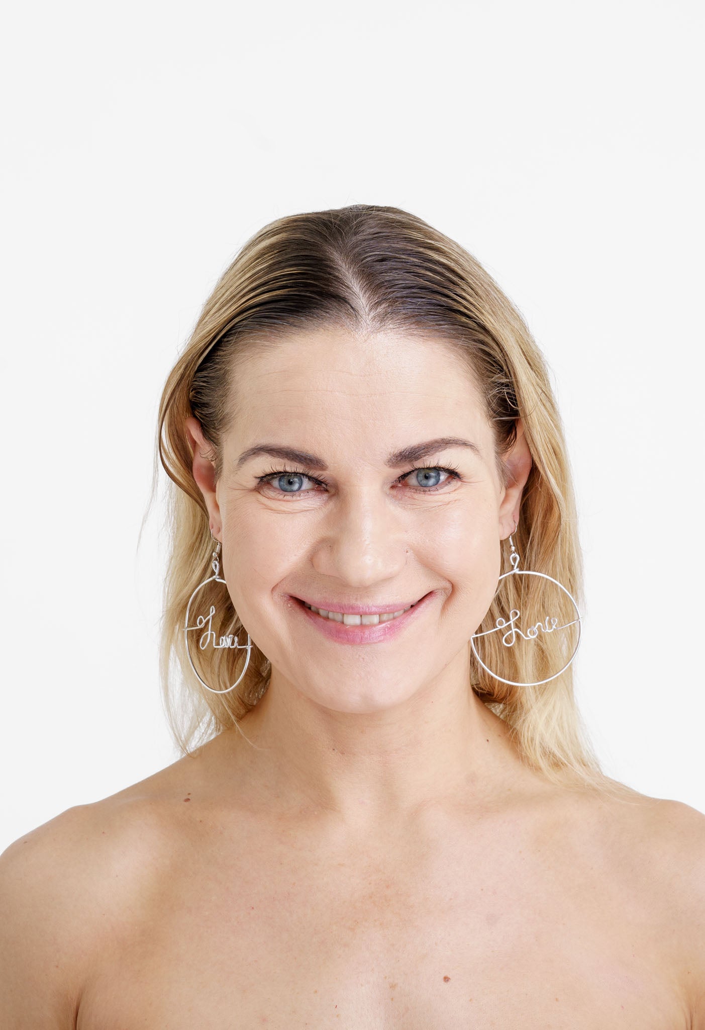 Ultralätta örhängen av aluminium. Krokar i silverpläterad mässing. Diametern pä örhängena är 7 cm.
