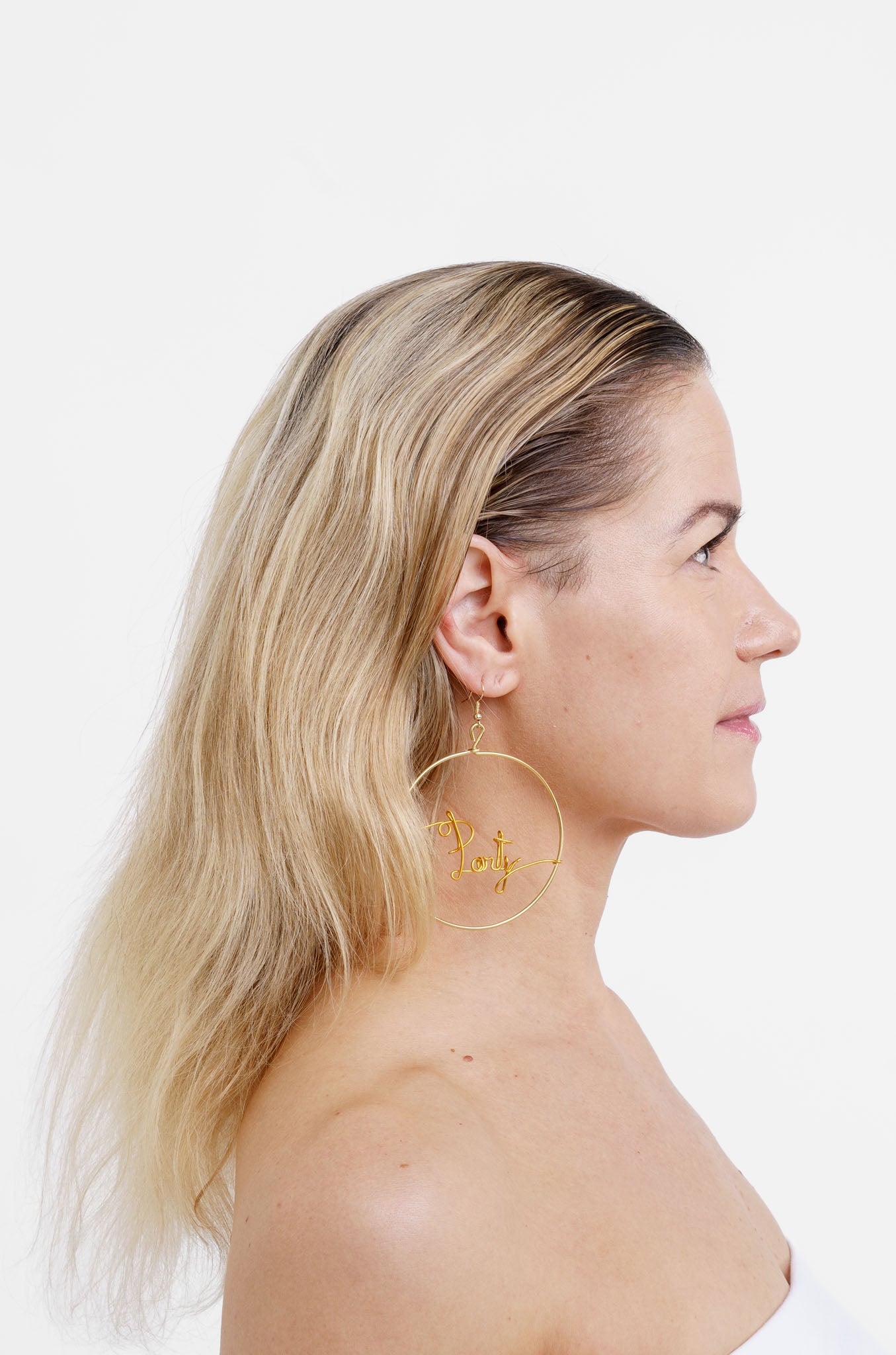 Ultralätta örhängen av aluminium. Krokar i förgylld mässing. Diametern pä örhängena är 7 cm.